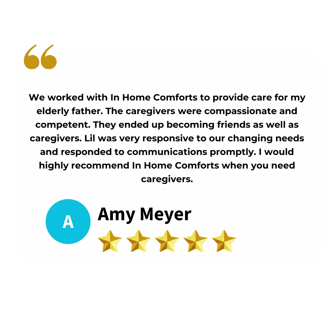 In Home Comforts may occasionally recommend products or third-party services that may benefit clients (ex: mobility aids, alert systems, community programs).